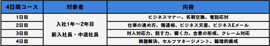 新入社員や若手社員が社会人として必要な「基本的ビジネスマナー」 「報連相」「チーム内でのコミュニケーション」など、実務に直結する内容を学べる全4日間の講習です✨
